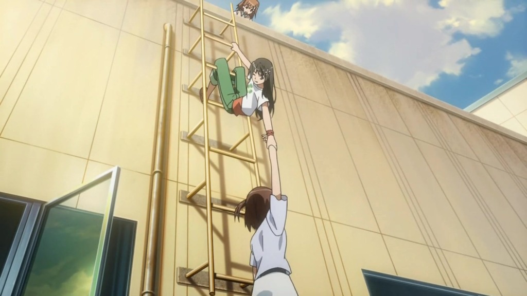 사다리에 한 팔로 체중 둘을 버티는 갓텐님이신데
