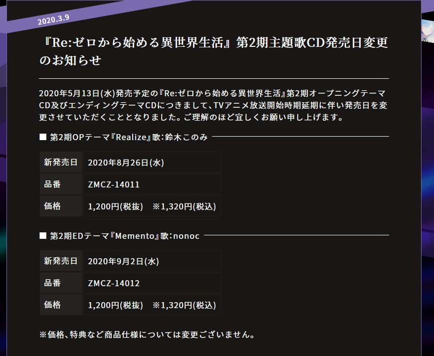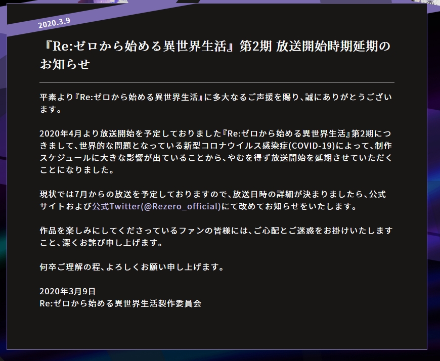 그리고 앞서 올렸듯이 리제로 2기는 7월 이후로 밀렸습니다