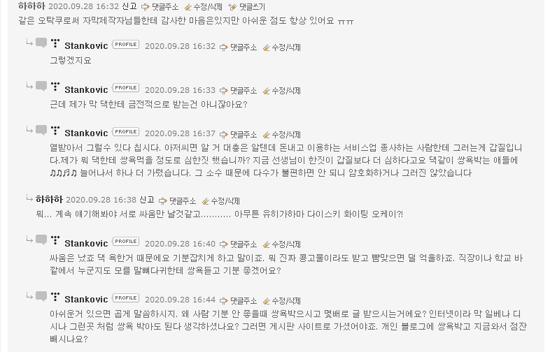 디시나 일베, 루리웹 등 여타 커뮤니티에서 쓰는 글마냥 쌍욕에 개인 블로그에 남기지 마세요.