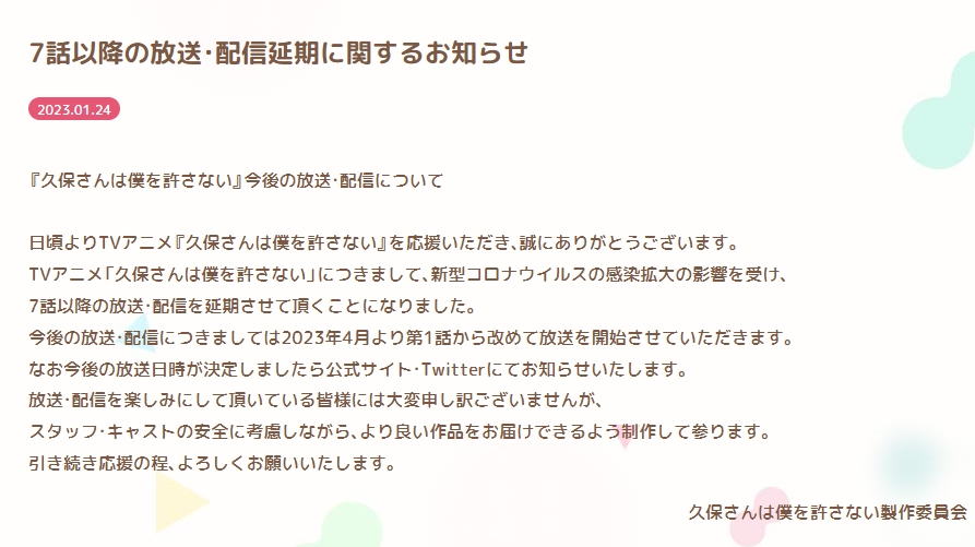 요약하면 코로나로 인해 7화 이후로는 X, 4월부터 1화부터 다시 시작